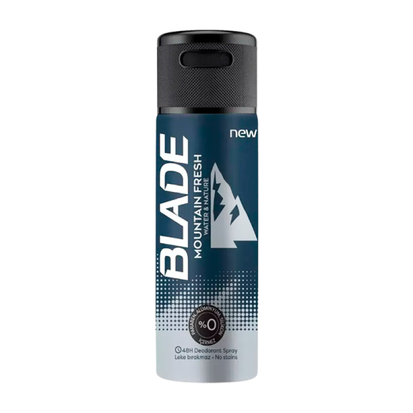 Дезодорант-спрей мужской Blade Mountain Fresh с ароматом бергамота, герани, гелиотропа и лаванды – дезодорант с мягким, но характерным запахом, сохраняющий действие на протяжении 48 часов. Не содержит в составе порошок, из-за чего не оставляет следов на одежде.