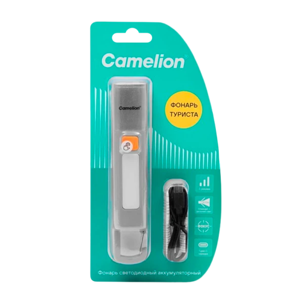 Фонарь ручной Camelion LED29362 2W LED+COB от аккумулятора Type-C 3 режима серый (1/12/96)