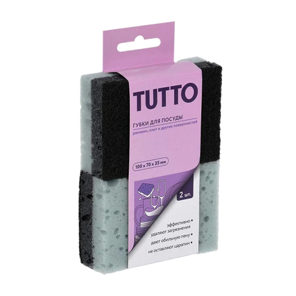 Губка для посуды TUTTO 10х7х3.5см 2шт. серый (1/48)