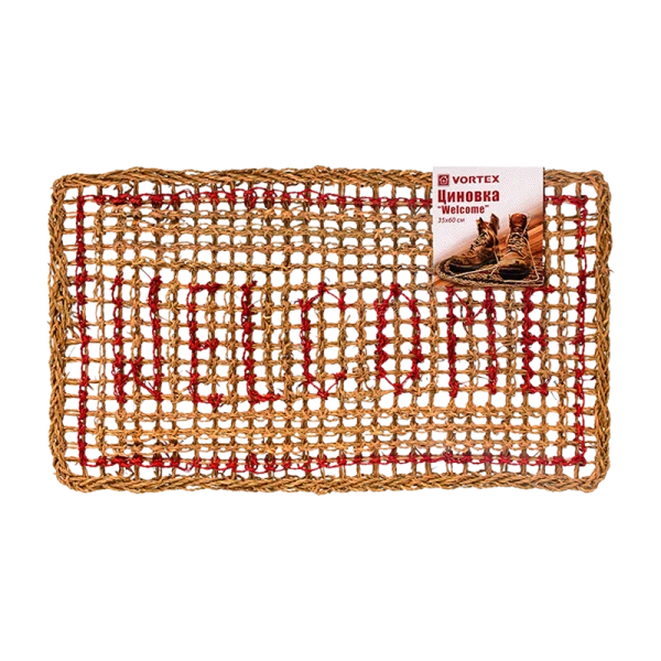 Коврик придверный VORTEX "Welcome" изготовлен из натурального волокна, отличается долговечностью, прочностью. Прекрасно очищает обувь, удерживает грязь, не боится влаги. Размер: 35 х 60 см.