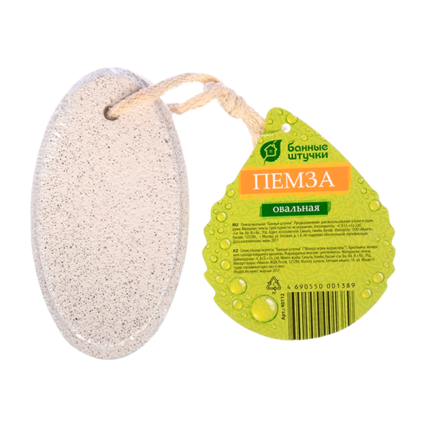 Пемза овальная Банные штучки предназначена для чистки подошвы ног во время принятия банных процедур. Изготовлена из прочного пористого материала, легко и бережно снимает предварительно распаренную кожу. После применения изделие нужно промыть под струей воды.