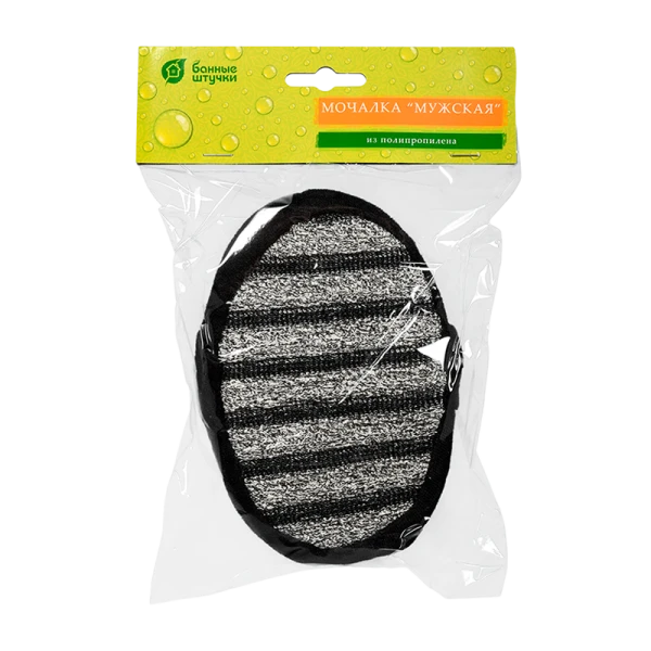 Мужская мочалка Банные штучки из полипропилена прекрасно взбивает гель для душа, давая обильную пену, обладает массажным эффектом. Материал не является благопритяной средой для размножения бактерий.