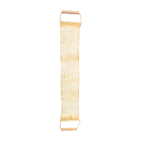 Мочалка-лента из сизаля (мексиканской агавы) с деревянными ручками предназначена для интенсивного, антицеллюлитного массажа.