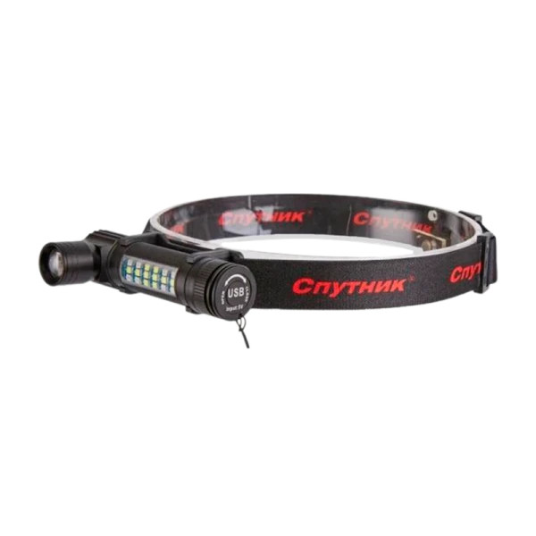 Фонарь налобный Спутник ASL658 8W LED от аккумулятора 7 режимов черный (1/20)