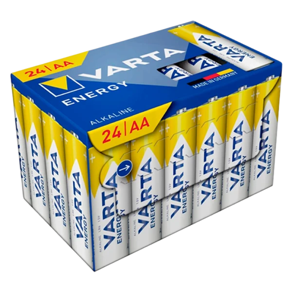 Простые долговечные щелочные батарейки с отличным соотношением цены и качества Varta ENERGY LR6 AA CUBE Pack24, обеспечивающие энергией устройства с низким энергопотреблением. Идеально подходят для устройств с низким энергопотреблением, таких как: радиоприемники и настенные часы. Срок хранения батареек Varta ENERGY CUBE - 5 лет;