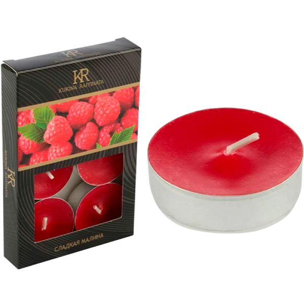 Свечи чайные KUKINA RAFFINATA "Сладкая малина" 6шт. в упаковке.