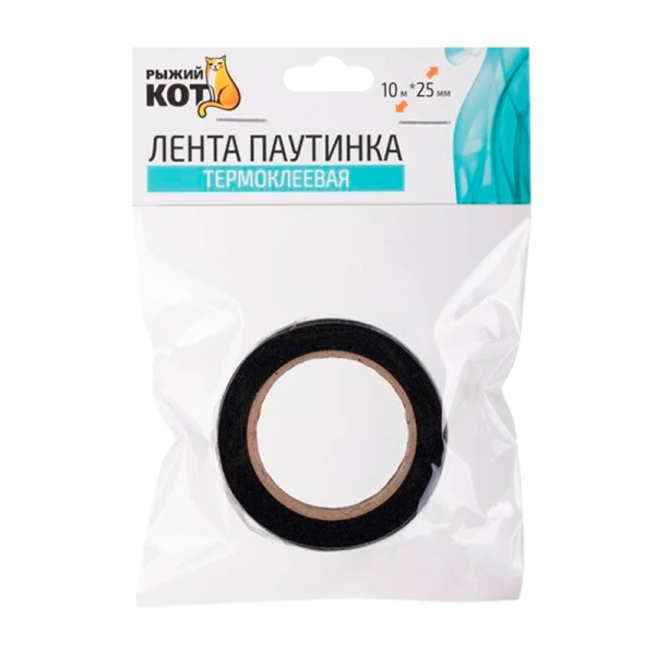 Лента паутинка Рыжий кот 10м*25мм термоклеевая черный (1/10/280)