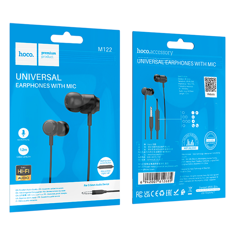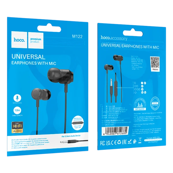 Вакуумные наушники HOCO M122 - это качественное аудиоустройство, обеспечивающее комфортное прослушивание музыки и удобное использование благодаря встроенному микрофону. Наушники внутриканальные оснащены стандартным AUX разъемом 3.5 мм.