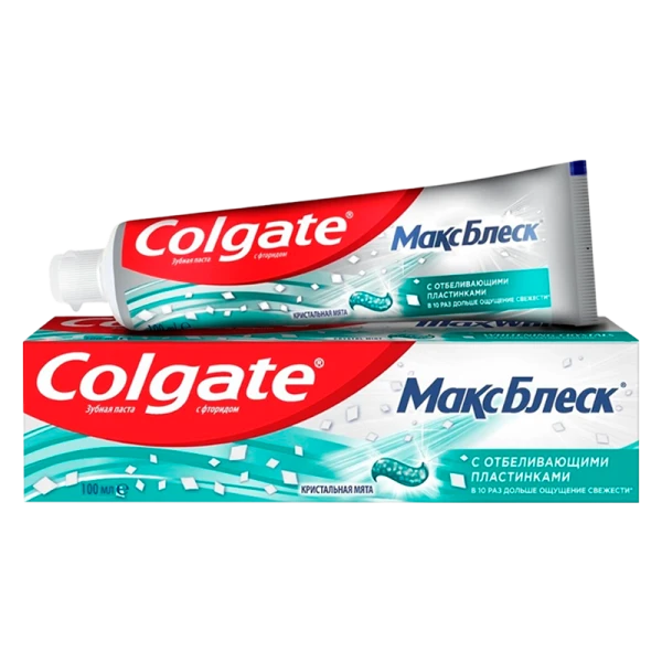 Отбеливающая паста для зубов от Colgate Макс Блеск 100 мл не только сделает ваши зубы белее, но и подарит невероятное ощущение свежести для еще большей уверенности в себе.