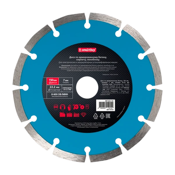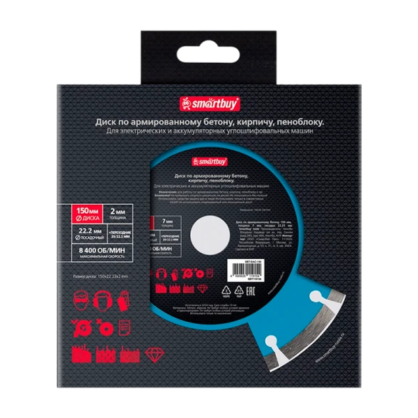 Диск алмазный Smartbuy по армированному бетону 150мм толщина 2мм посадка 22.23мм