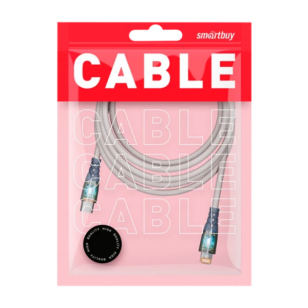 Кабель для зарядки и передачи данных Type-C-Lightning от Smartbuy. Этот кабель оснащен прозрачными наконечниками и предназначен для использования с различными мобильными устройствами, такими как телефоны и планшеты. Его длина составляет 1 метр, что обеспечивает удобство использования.