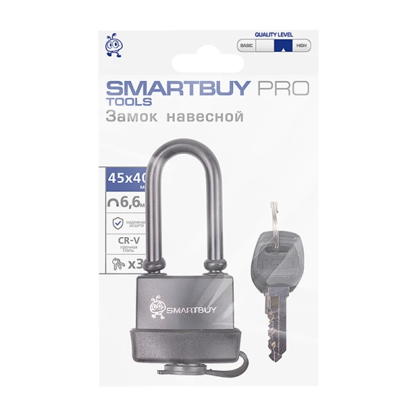 Замок Smartbuy навесной 40x45мм удлиненная дужка 3 ключа