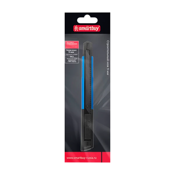 Нож строительный Smartbuy 9мм выдвижной обрезиненная рукоять голубой