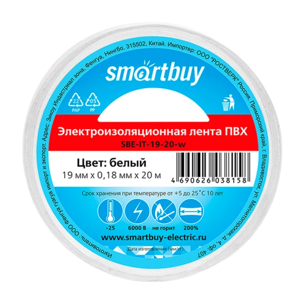 Изолента Smartbuy 19мм*20м ПВХ белый