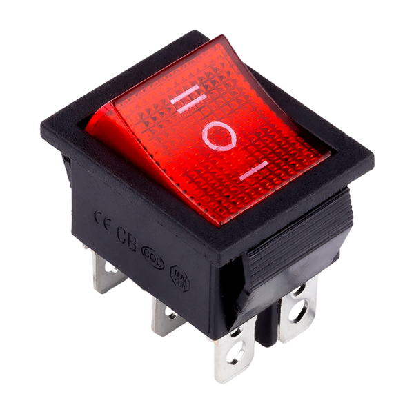 Переключатель SmartBuy клавишный 250В 16А (6с) ON-OFF-ON с подсветкой и нейтралью красный