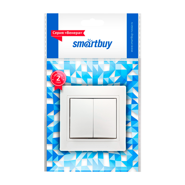 Выключатель Smartbuy "Венера" 2-клавишный 10А белого цвета.