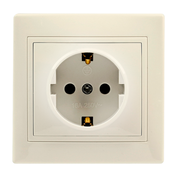Эта модель имеет бежевый цвет корпуса и подходит для скрытой установки. Максимальная допустимая нагрузка по току составляет 16А.