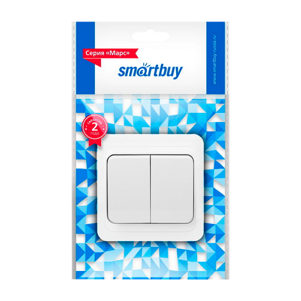 Выключатель Smartbuy "Марс" 2-клав.10A керамика белый