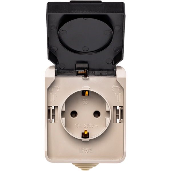 Розетка Smartbuy "Сатурн" 1гн. 16A С/З пластик с крышкой бежевый