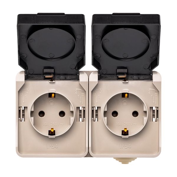 Розетка Smartbuy "Сатурн" 2-местная с заземлением 16А с крышкой, IP54, бежевая - идеальное решение для открытой установки.