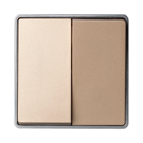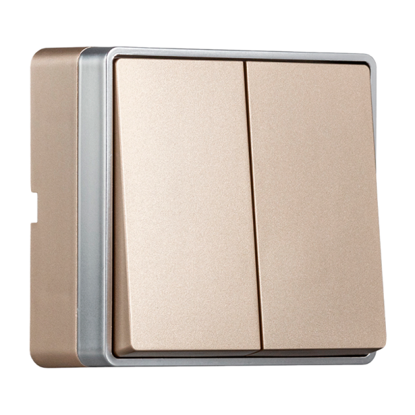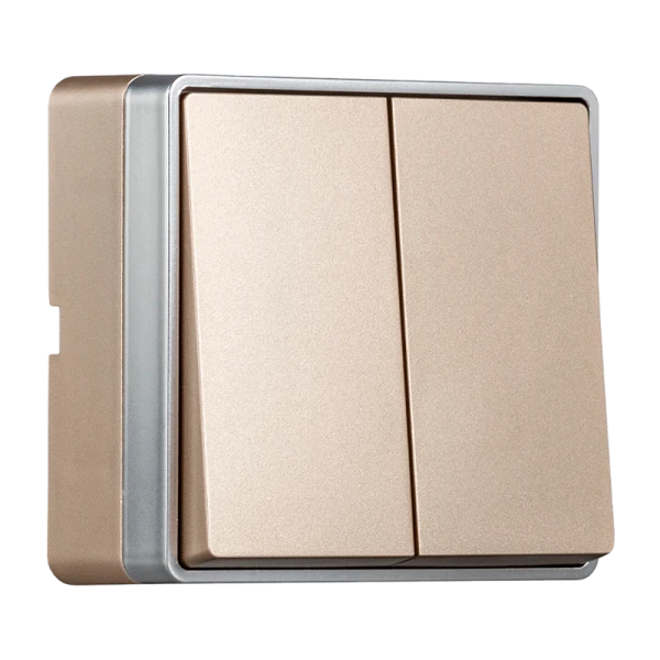 Выключатель Smartbuy "Сириус" 2-клавишный накладной с номинальной мощностью 10 ампер и корпусом цвета шампань.
