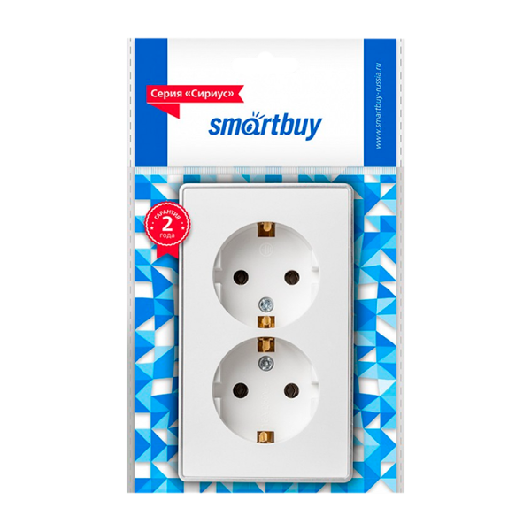 Розетка Smartbuy "Сириус" 2-местная белая розетка с заземлением.