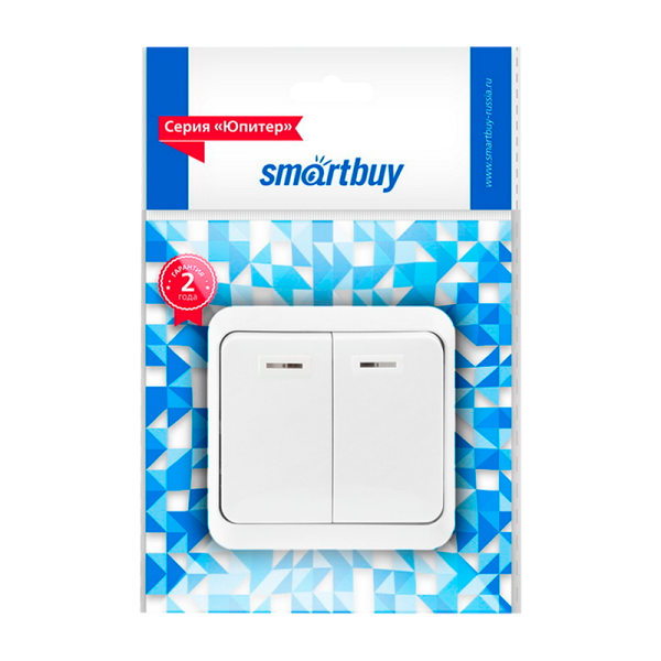Выключатель Smartbuy "Юпитер" 2-клав.10A с индикатором белый