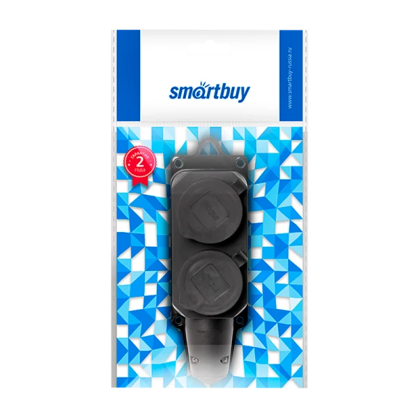 Розетка Smartbuy 2гн. 16A С/З каучук с крышкой черный