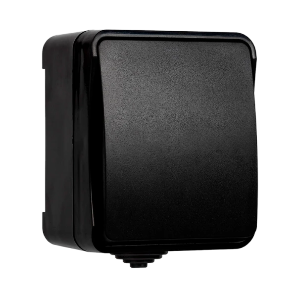 Электроустановочное изделие - выключатель Smartbuy "Сатурн" 1-клавишный 10А, IP 54, черный. Предназначен для открытой установки с защитой IP54. Способ монтажа - накладной, цвет корпуса - черный.