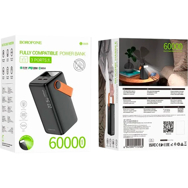Внешний аккумулятор Borofone BJ66B 60000mAh 3.0A 22.5W 2USB LED черный (1/11)