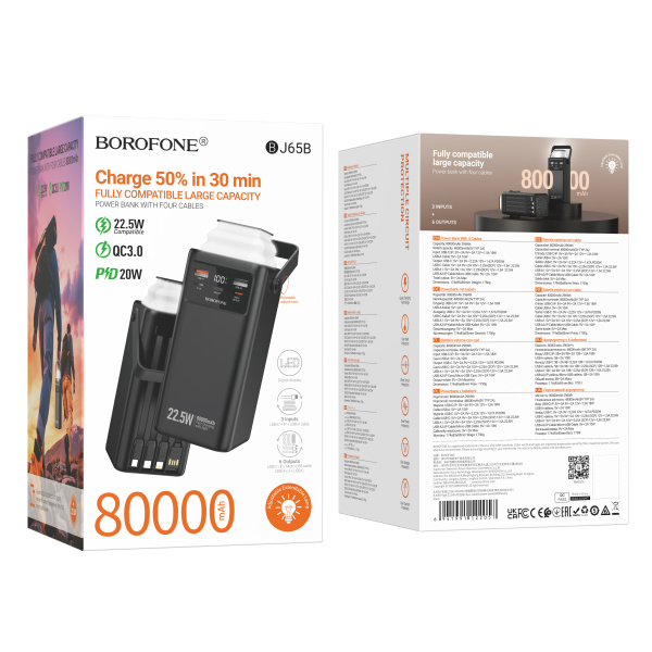 Внешний аккумулятор Borofone BJ65B 80000mAh 2.0A 22.5W 2USB/Lightning/Type-C PD20W черный (1/9)