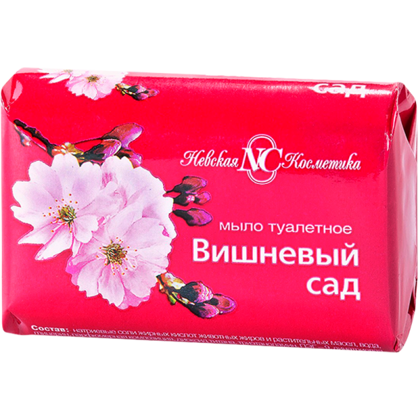 Мыло Невская Косметика Вишневый сад предназначено для бережного очищения кожи. Прекрасно пенится, изготовлено на основе натуральных жиров и масел. Обладает приятным ароматом цветущего вишнёвого сада. Мыло подходит для всех типов кожи. Для лица, ног, рук, тела.