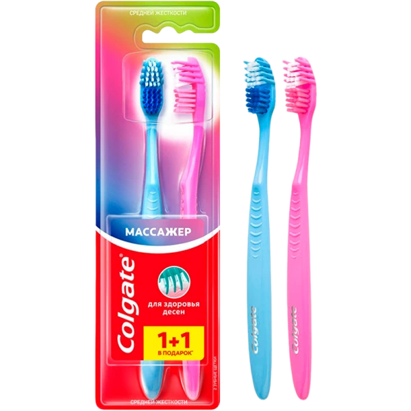 Зубная щетка COLGATE Массажер средняя 2шт.(1+1)