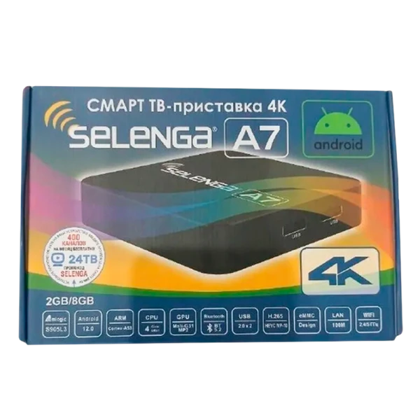 SMART ТВ-приставка 4K SELENGA А7 Android — мощное решение для потока контента в формате 4K. На базе операционной системы Android 12 обеспечивает быструю работу благодаря 2 ГБ оперативной памяти и 8 ГБ встроенной. Поддержка Bluetooth 5.2 позволяет подключать беспроводные устройства, а двойной диапазон Wi-Fi (2.4 + 5 ГГц) гарантирует стабильную передачу данных.