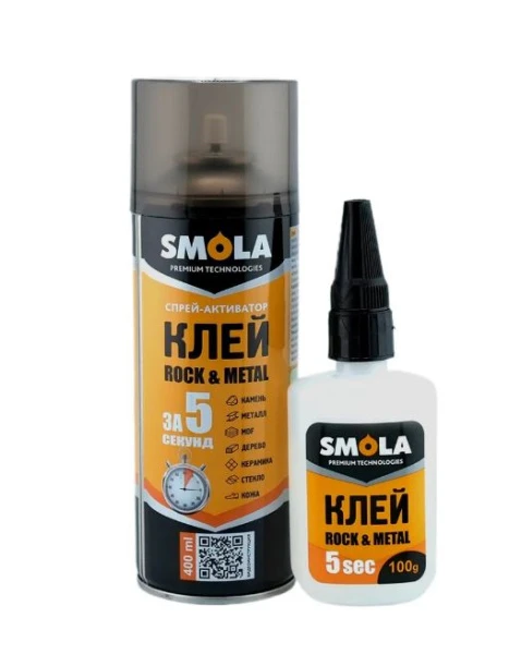 Клей Rock Metal 5 сек. двухкомпонентный сверхбыстрый - высококачественный клей на цианоакрилатной основе в комплекте со спреем-активатором.