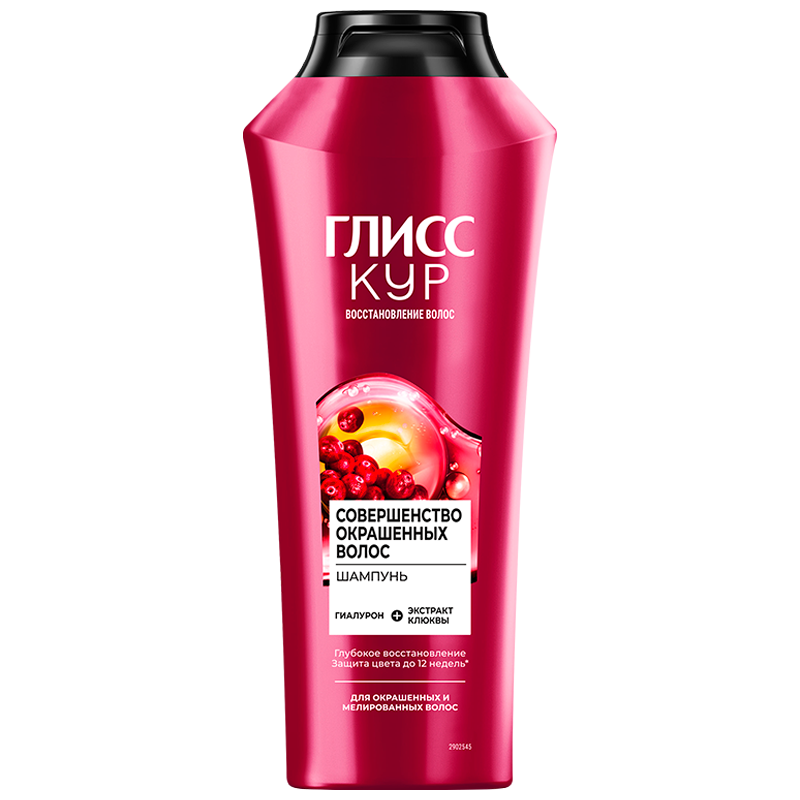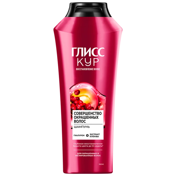 Шампунь Глисс Кур Совершенство окрашенных волос с гиалуроном и экстрактом клюквы поможет сохранить качество и интенсивность цвета окрашенных волос. Помимо защиты от вымывания пигмента окрашенным волосам требуется особое питание и глубокое восстановление. Шампунь Глисс Кур обеспечит защиту цвета от вымывания до 12 недель, глубокое восстановление волос после окрашивания, а также добавит волосам блеск. Шампунь Глисс Кур содержит 90% ингредиентов природного происхождения.