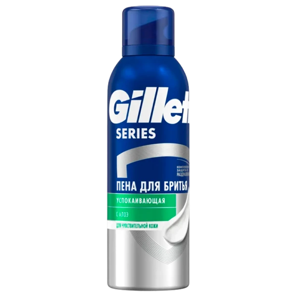 Пена для бритья серии Gillette с алоэ для чувствительной кожи обеспечивает полную защиту от раздражения после бритья, уменьшая порезы, покраснения, жжения, жжение и чувство стянутости. Пена охлаждает и успокаивает кожу, обеспечивая освежающий эффект во время бритья. Обогащена алоэ. Уникальная формула содержит дополнительные увлажняющие ингредиенты. которые обеспечивают гладкое и комфортное бритье - меньше дергания и выдергивания.