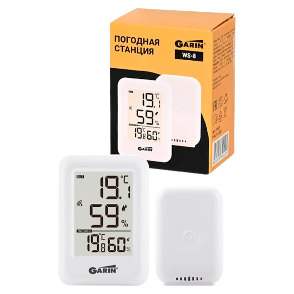 GARIN WS-8 - это термометр-гигрометр, который позволяет определять температуру и относительную влажность воздуха. Благодаря внешнему беспроводному датчику вы можете отслеживать погодные условия в нескольких помещениях одновременно. Идеально подходит для контроля оптимальных условий в теплицах, погребах, детских комнатах и других, чувствительных к температуре и влажности мест.
