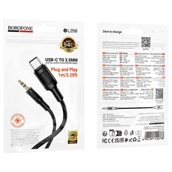 Аудиокабель Borofone BL25B – это качественное решение для подключения устройств с разъемами 3.5 мм и TypeC. Этот кабель позволяет передавать аудиосигнал с минимальными потерями, обеспечивая высокое качество звука.