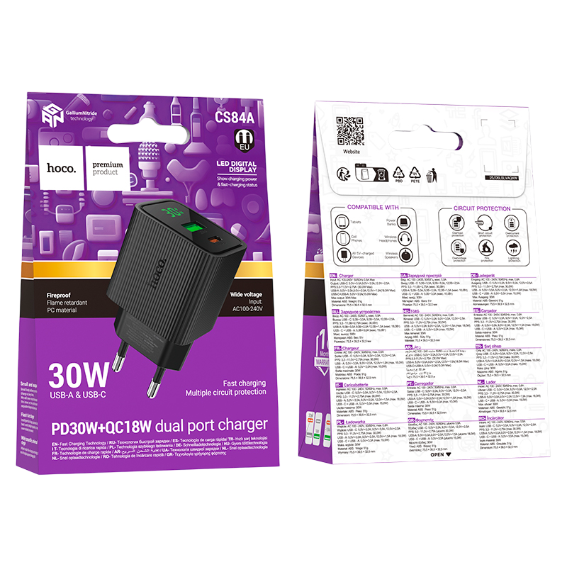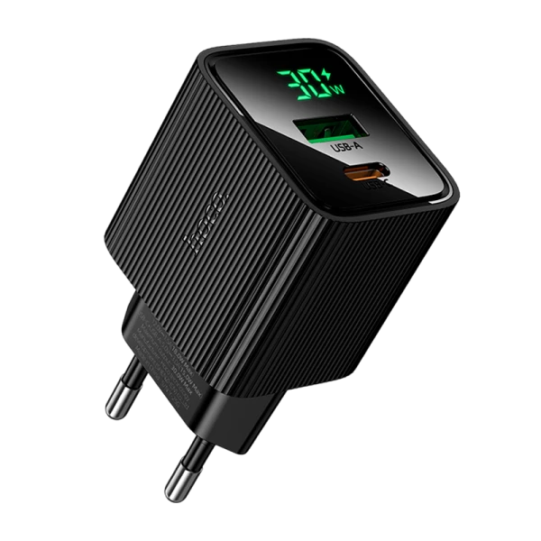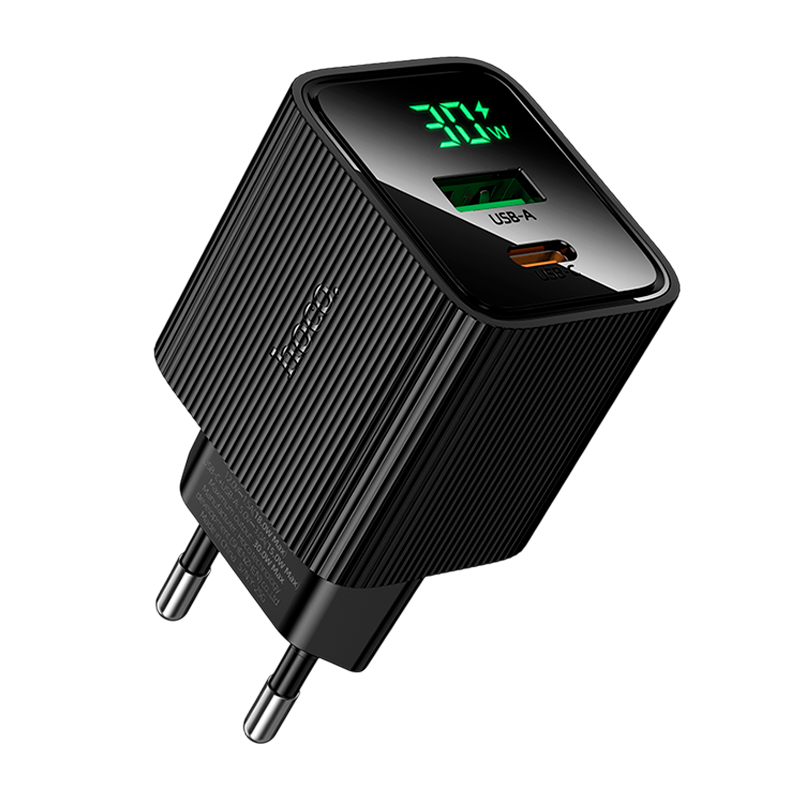 Сетевое З/У HOCO CS84A 1USB+1Type-C 3.0A 18W PD,QC дисплей черный цвет.