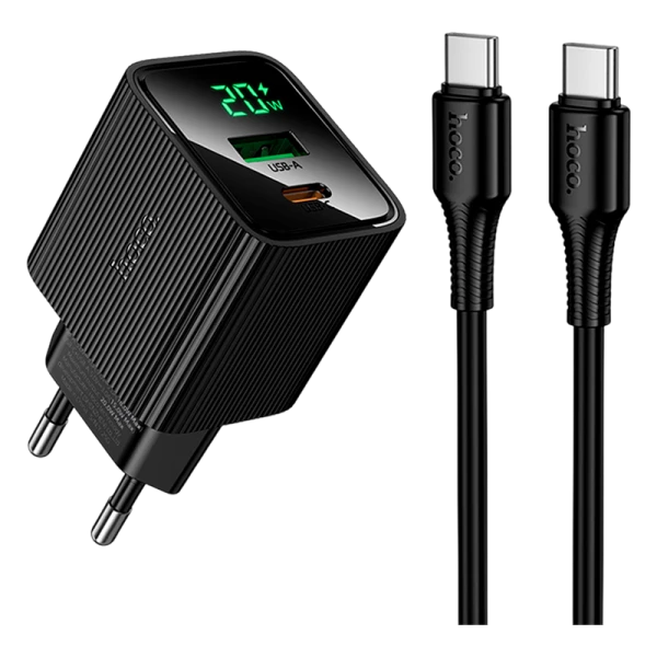Сетевое З/У HOCO CS83A 1USB+1Type-C 3.0A 20W PD,QC дисплей с кабелем Type-C черный цвет.