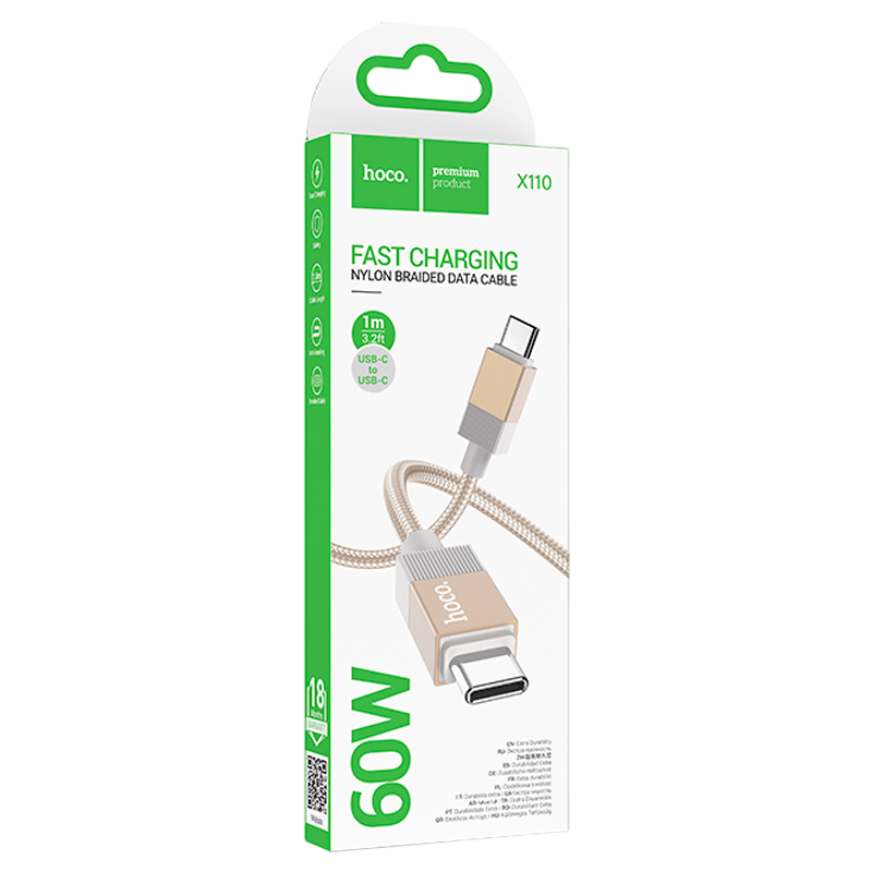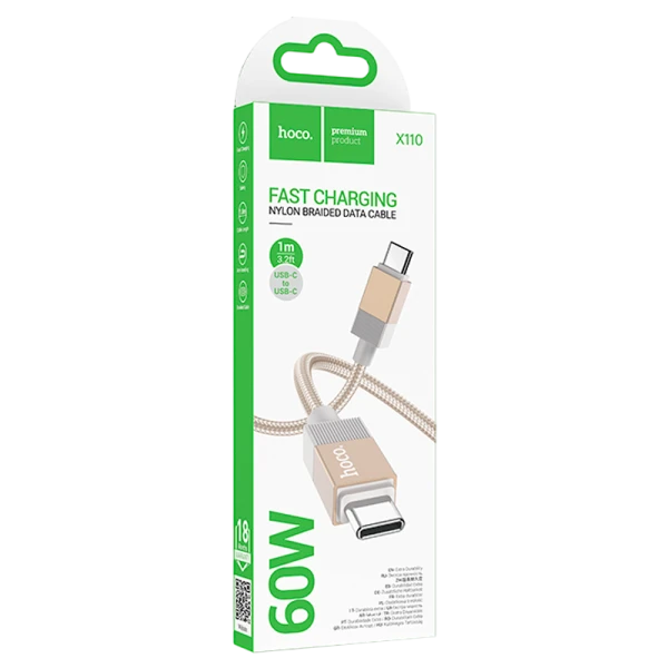 Кабель HOCO X119 USB (m)-Type-C (m) 1м 3.0A нейлон золотой.