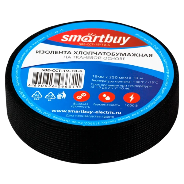 Изолента хлопчатобумажная Smartbuy - это надежный помощник в электромонтажных работах. Ее размеры составляют 0.25х19мм, а длина рулона - 10 метров. Изолента выполнена в черном цвете. Она обеспечивает отличную изоляцию и легко принимает нужную форму.