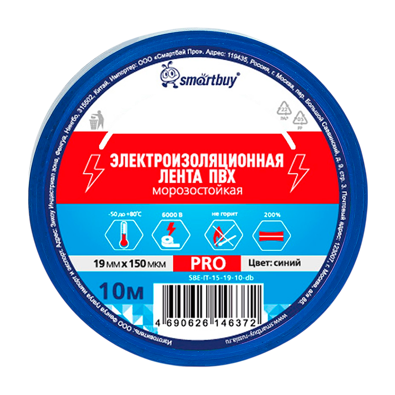 Изолента Smartbuy PRO 19мм*10м ПВХ морозостойкая синий