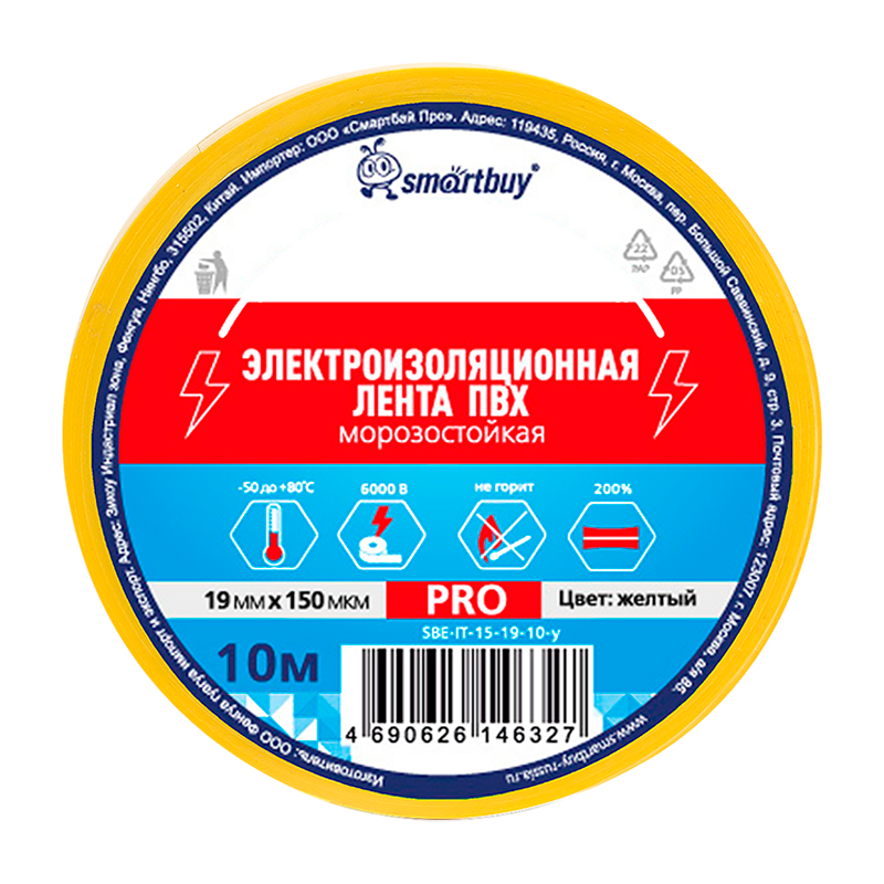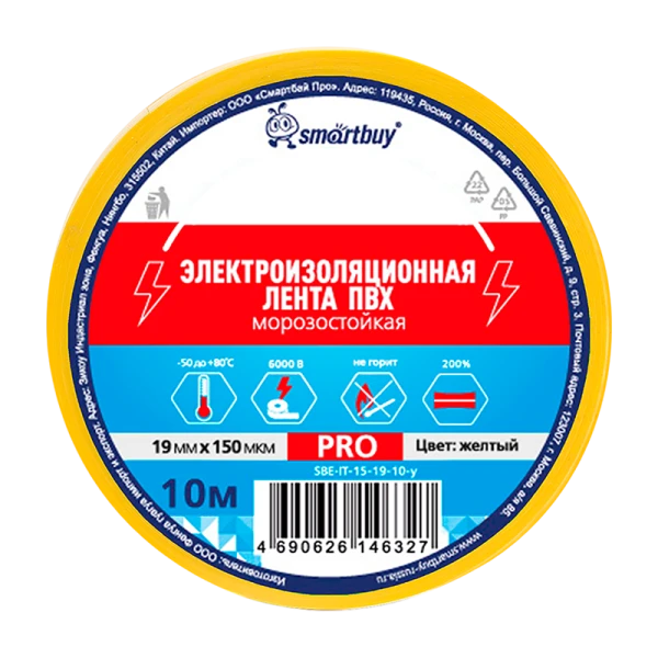 Изолента Smartbuy PRO 19мм*10м ПВХ морозостойкая желтый