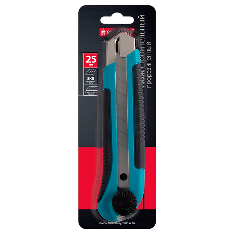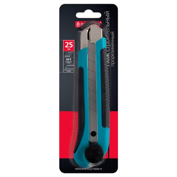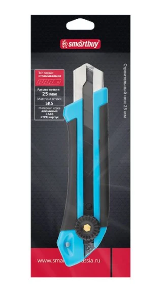 Нож строительный Smartbuy 25мм выдвижной ABS+TPR корпус голубой