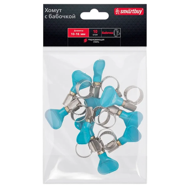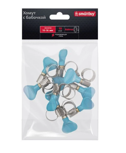 Хомут Smartbuy Бабочка нержавеющая сталь 10-16мм 10шт.