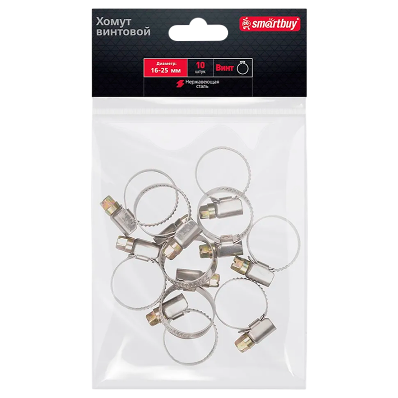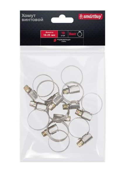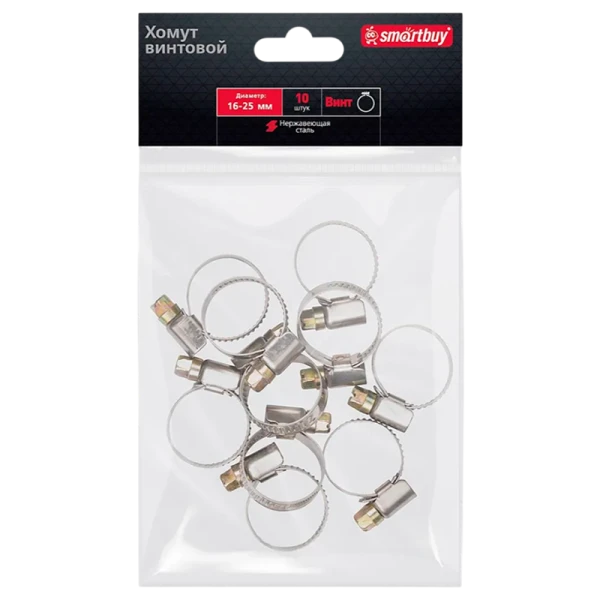Хомут Smartbuy Винт нержавеющая сталь 16-25мм 10шт.