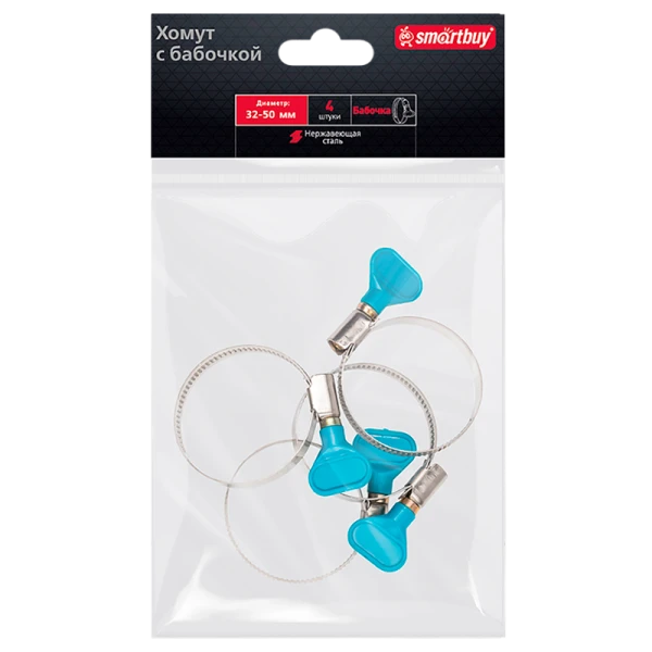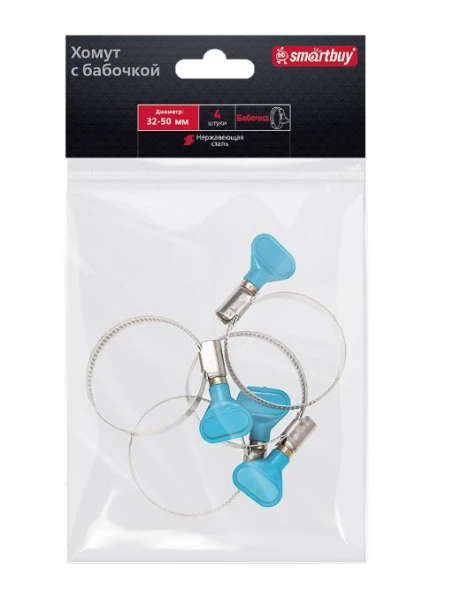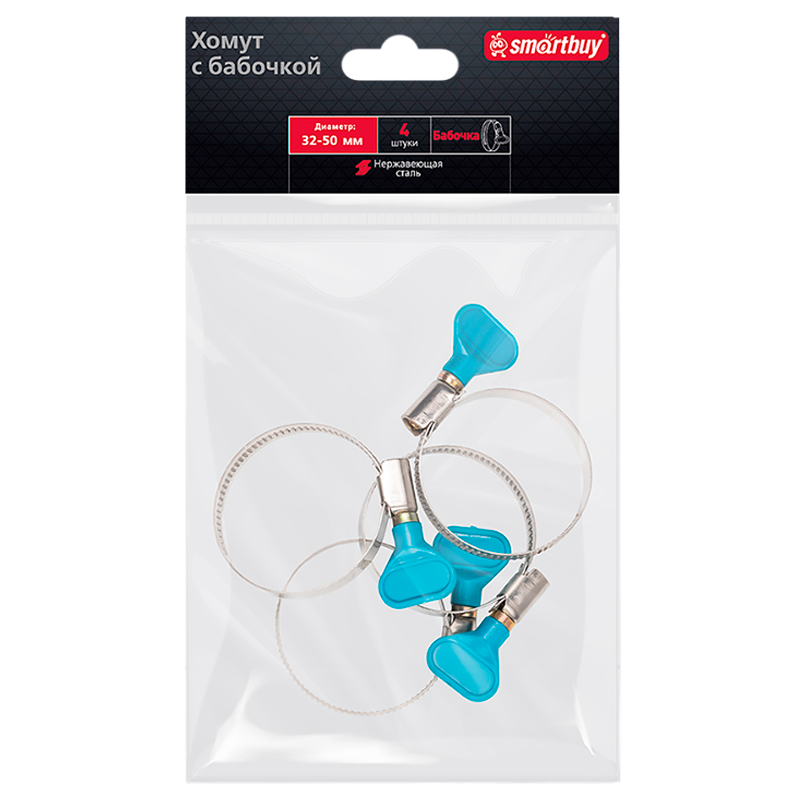 Хомут Smartbuy Бабочка нержавеющая сталь 32-50мм 4шт.