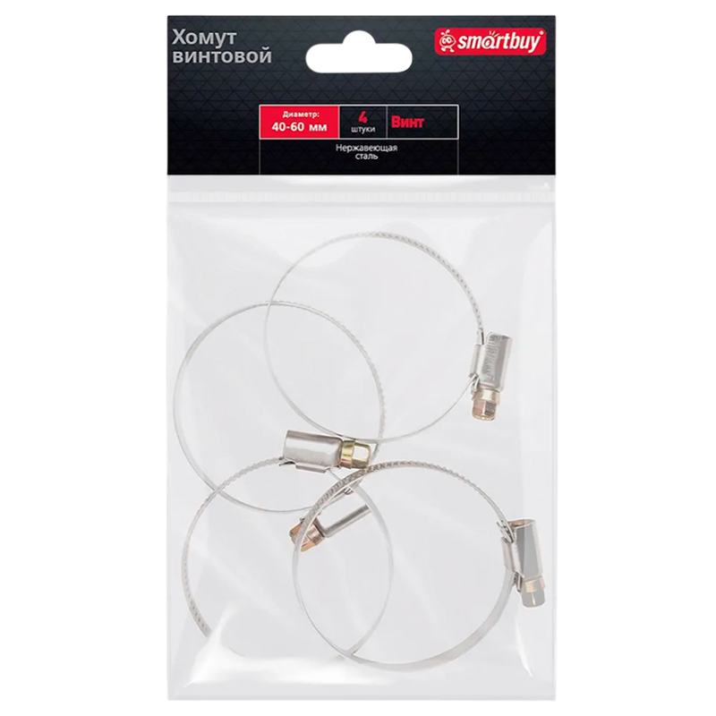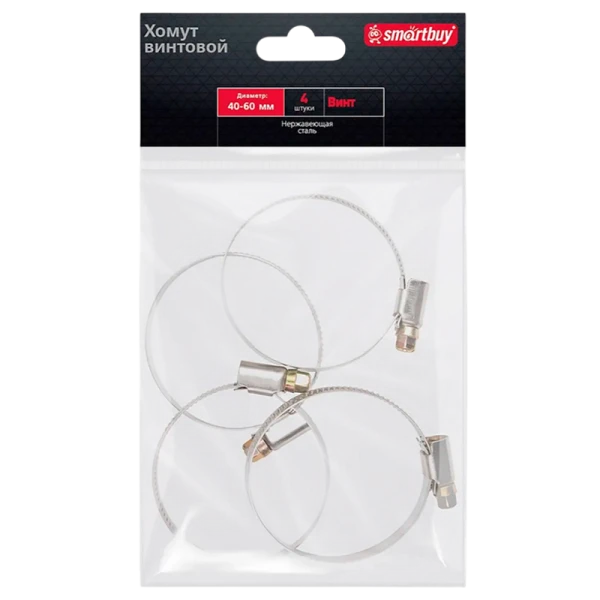 Хомут Smartbuy Винт нержавеющая сталь 40-60мм 4шт.